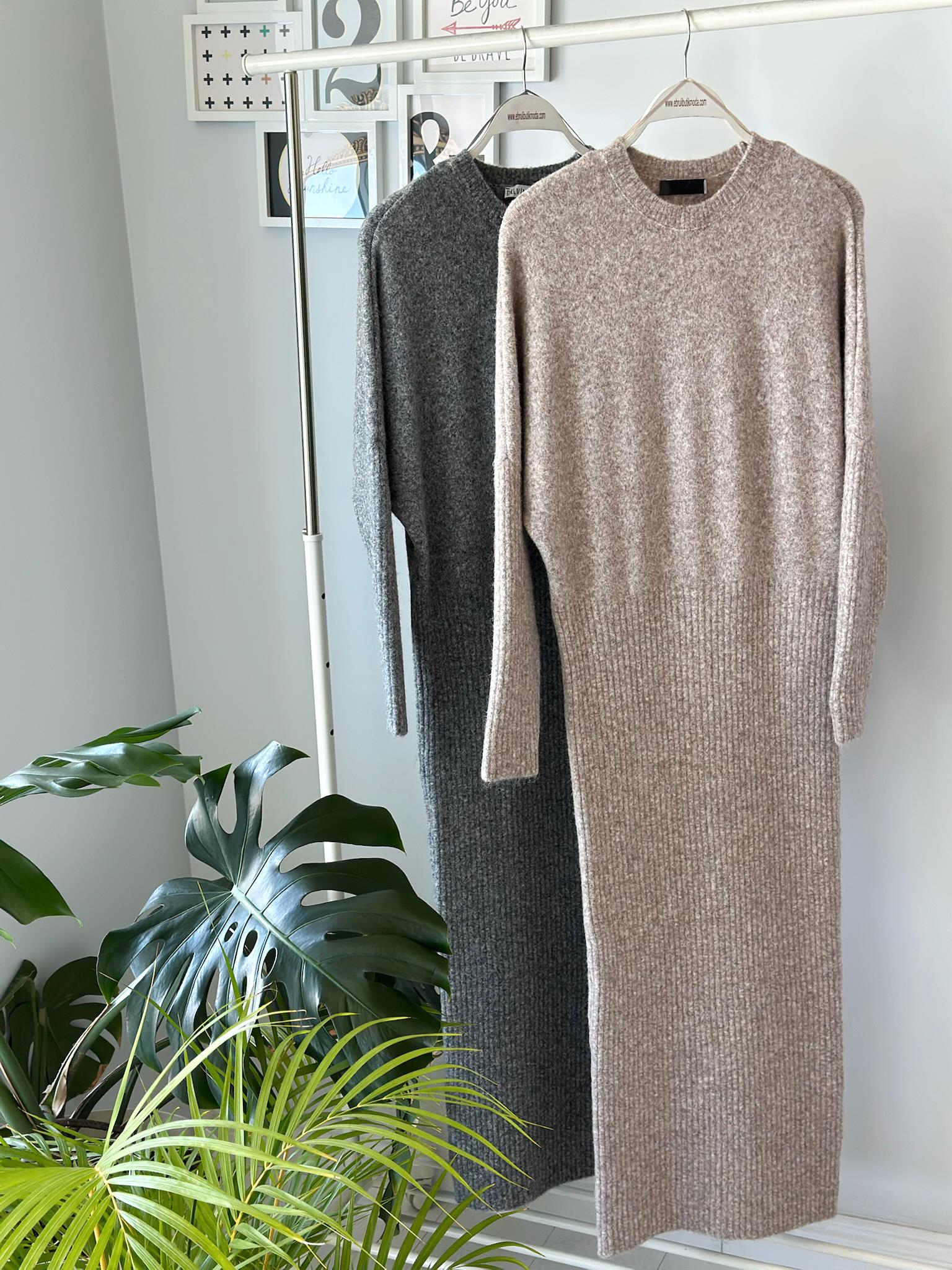 BİSİKLET YAKA YUMUŞAK DOKULU TRİKO ELBİSE