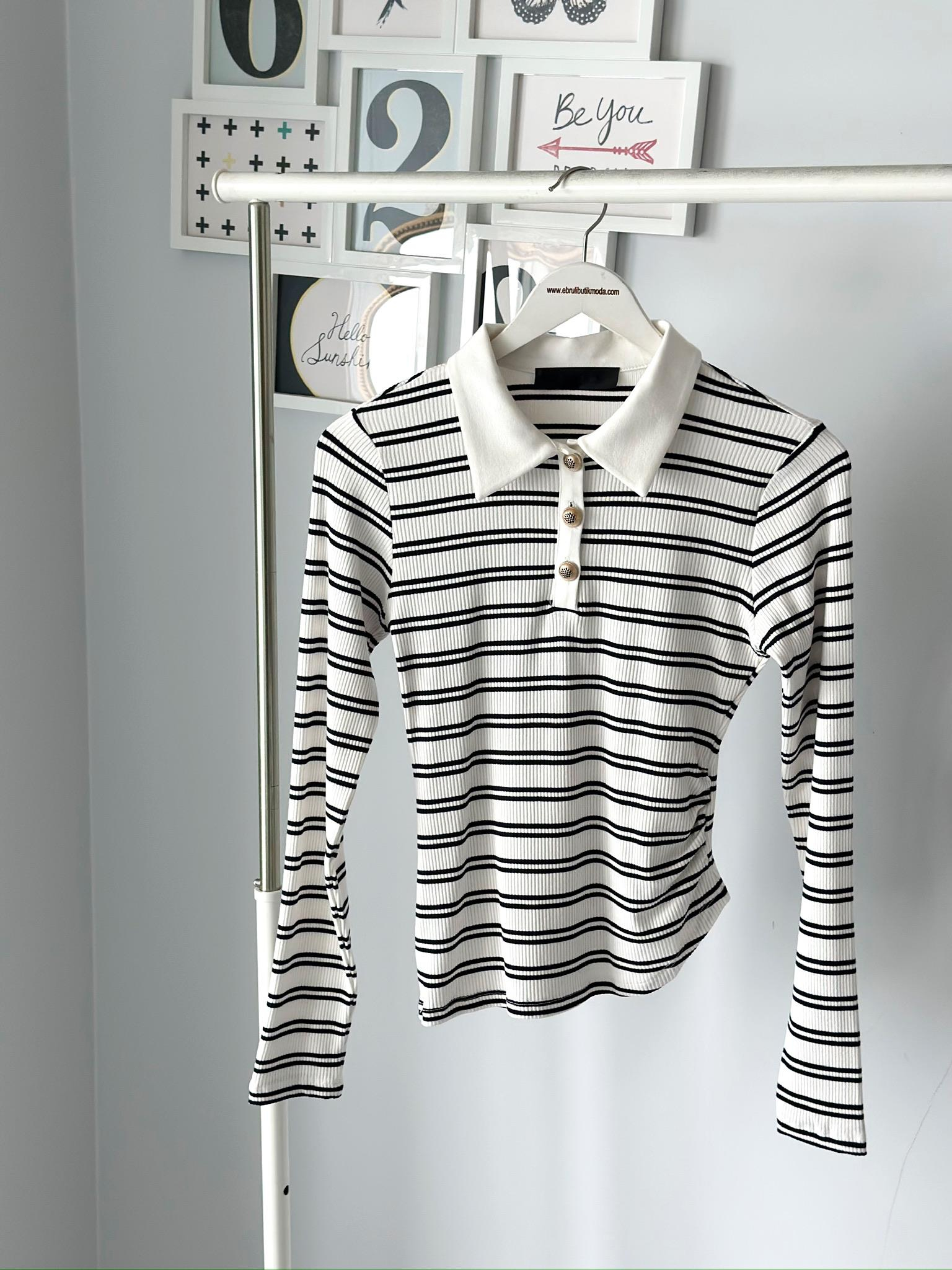 POLO YAKA GOLD DÜĞMELİ BLUZ