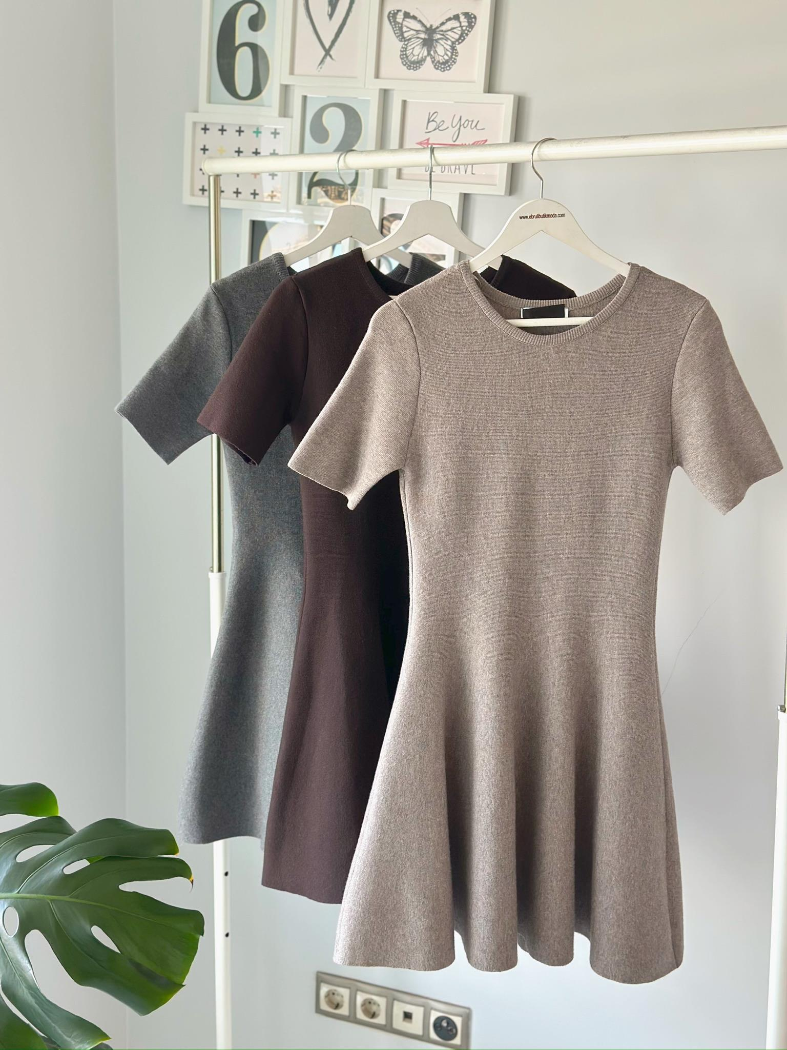 YARIM KOL VOLANLI TRİKO ELBİSE